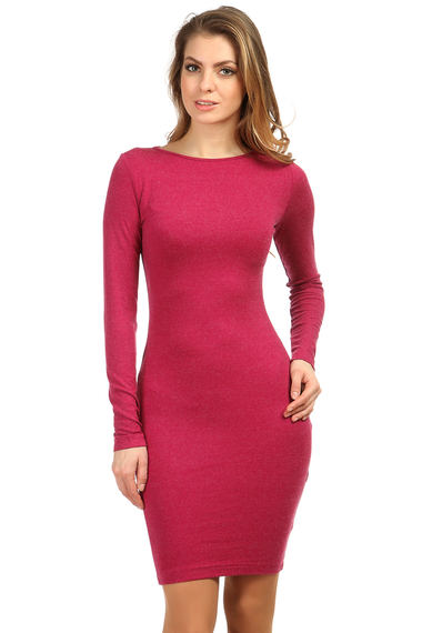ОписаниеЯркое малиновое платье "чулок" из вискозной ткани с шерстью. Модель с длинными рукавами и округлой горловиной, полностью облегающее.