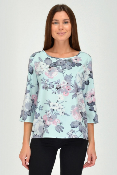 Фото товара 19890, голубая блузка с цветами