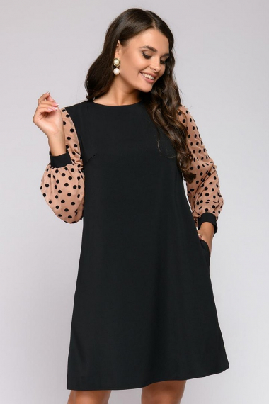 Фото товара 21967, черное платье свободного силуэта с длинными рукавами из фатина